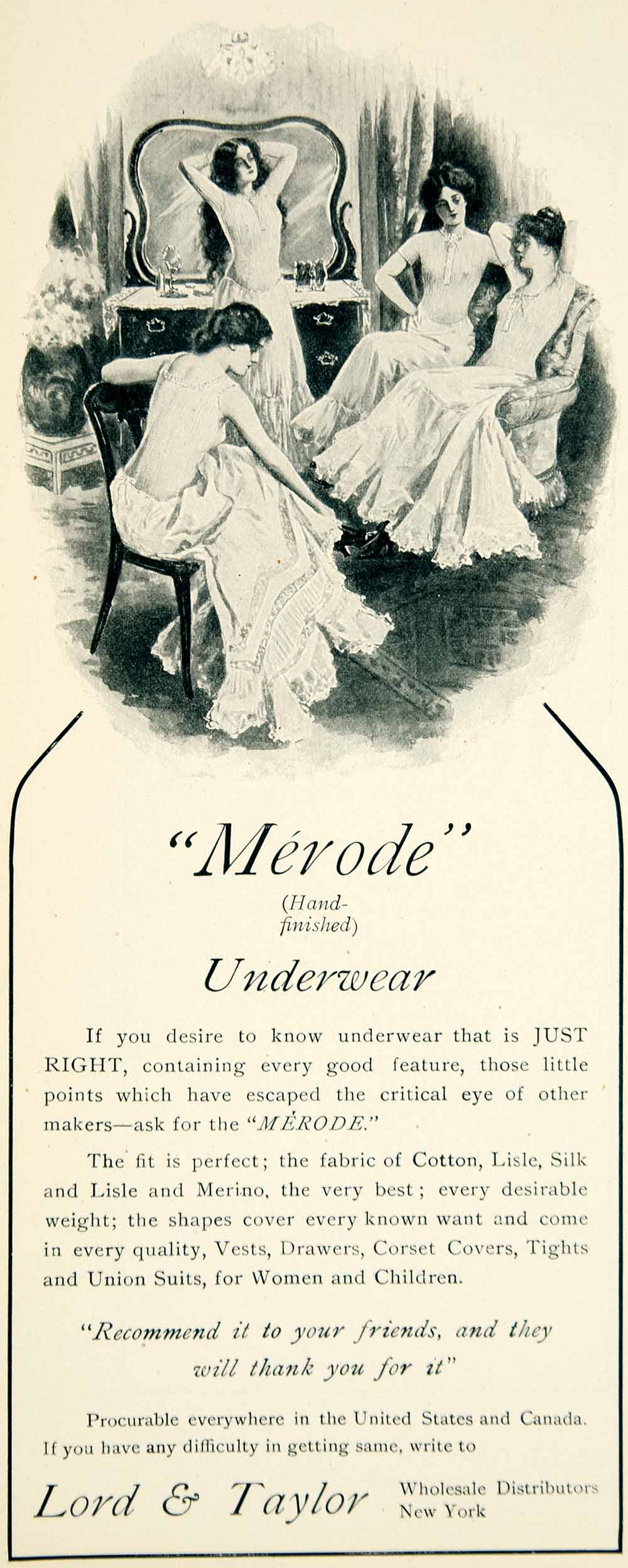 This is an original 1905 duotone print ad for Mérode underwear that was sold by Lord & Taylor of New York, NY.