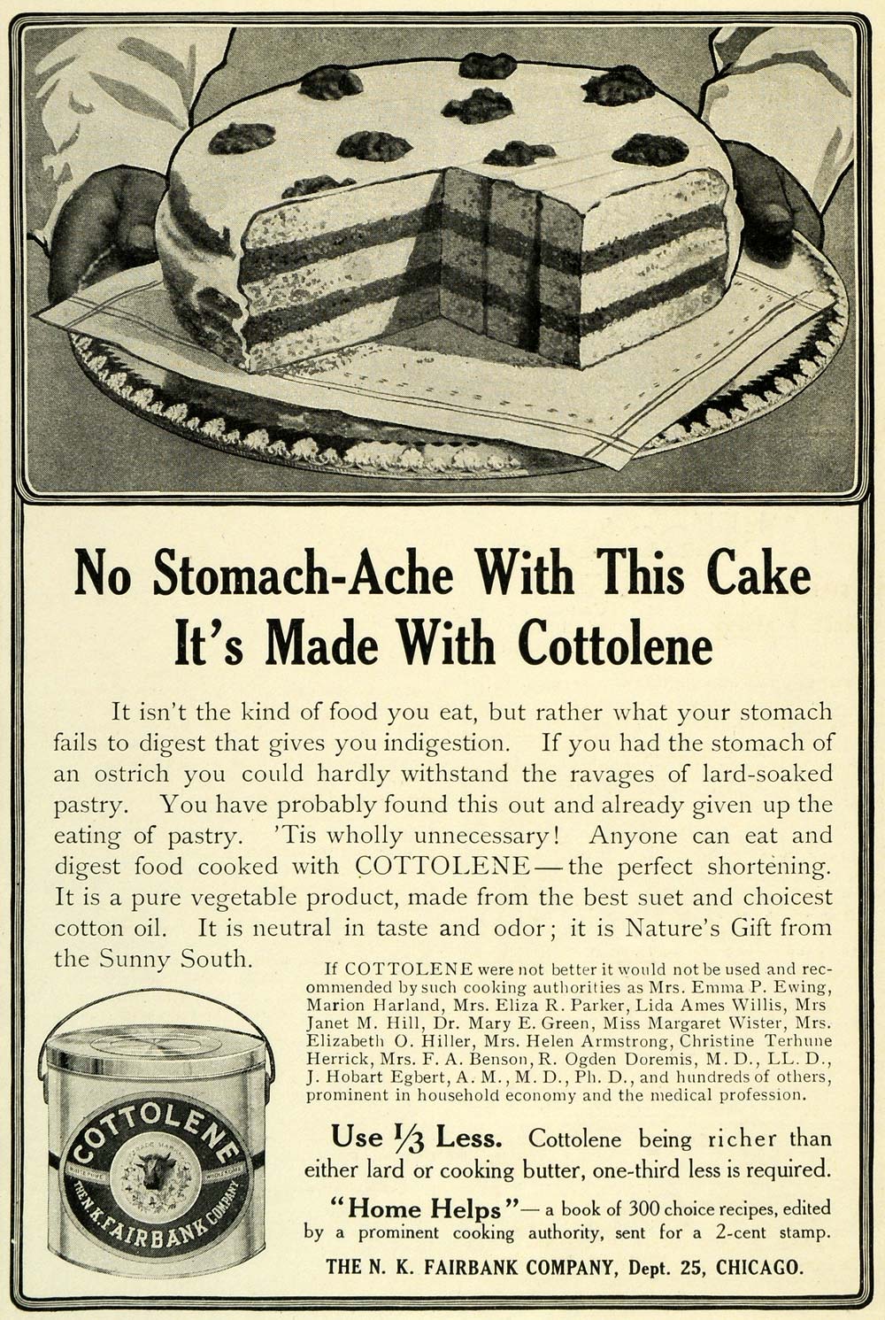 1905 Ad N. K. Fairbank Cottolene Baking Shortening Lard Cake Tray Cook LHJ6
