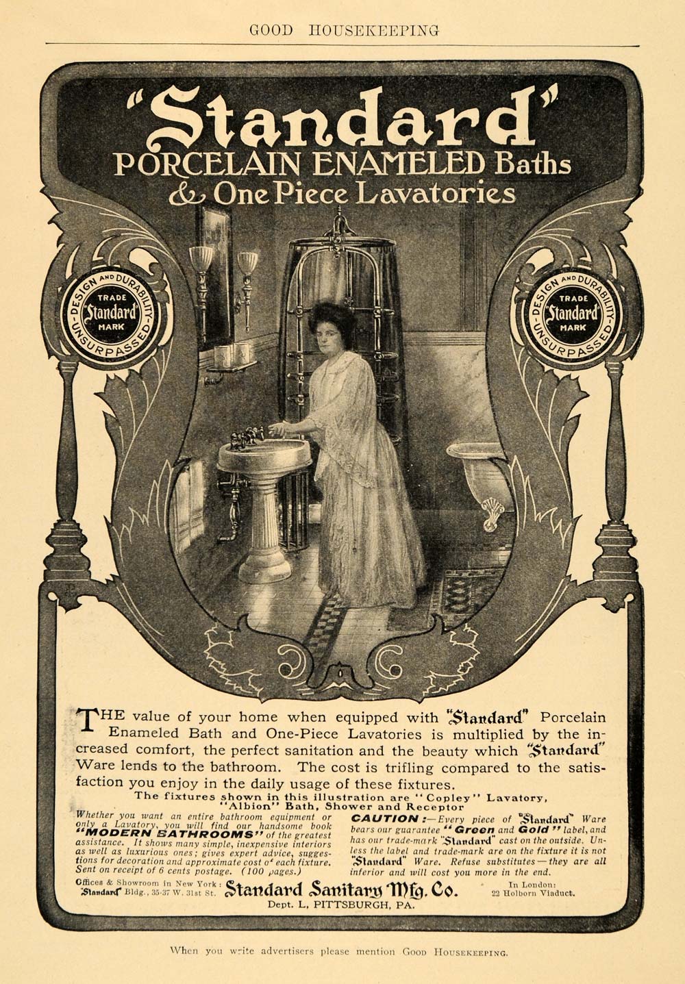 This is an original 1905 black and white print ad for the Standard Sanitary Manufacturing Company of Pittsburgh, Pennsylvania.