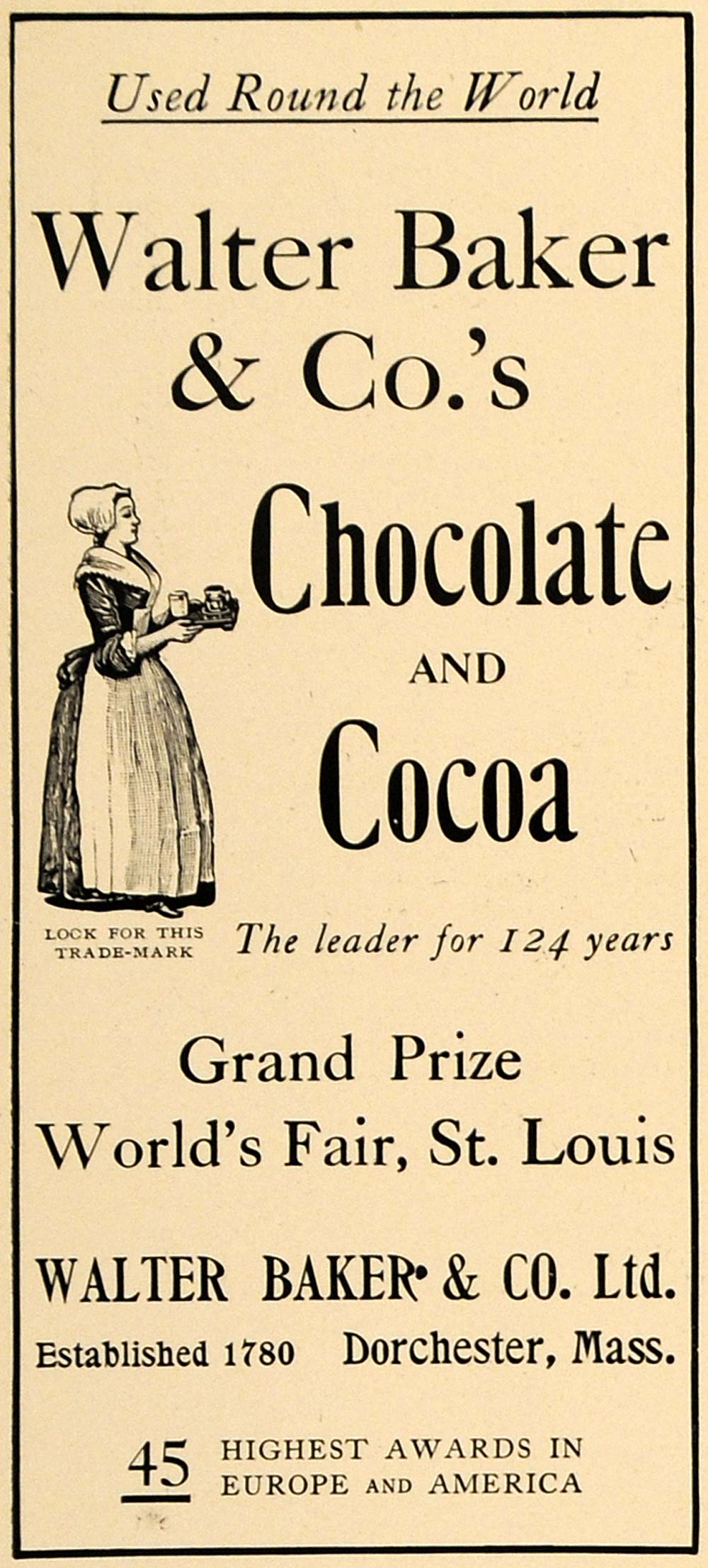 1905 Ad Walter Baker Chocolate Cocoa Woman Maid - ORIGINAL ADVERTISING CL7