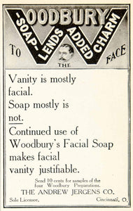This is an original 1905 black and white print ad for Woodbury brand Soap that was made by the Andrew Jergens Company.
