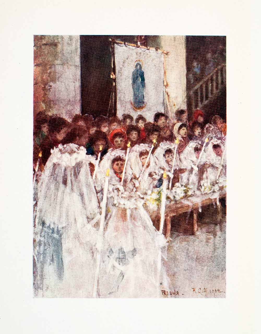 1905 Color Print Communion Ceremony Ritual Cathdral Fiesole Romulus Goff XGYA2