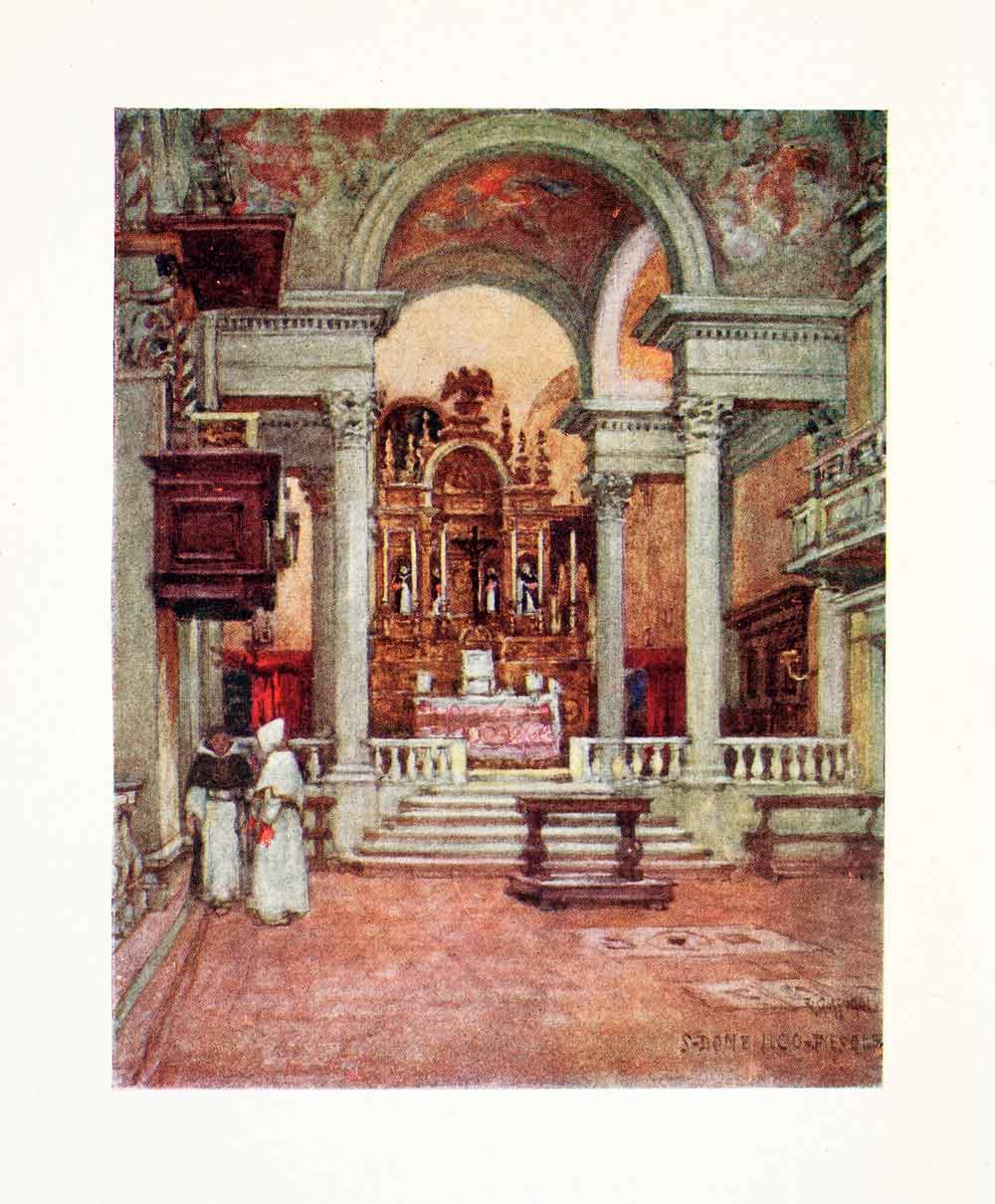 1905 Color Print Fiesole Italy Church San Domenico Convent Altar Monk Goff XGYA2