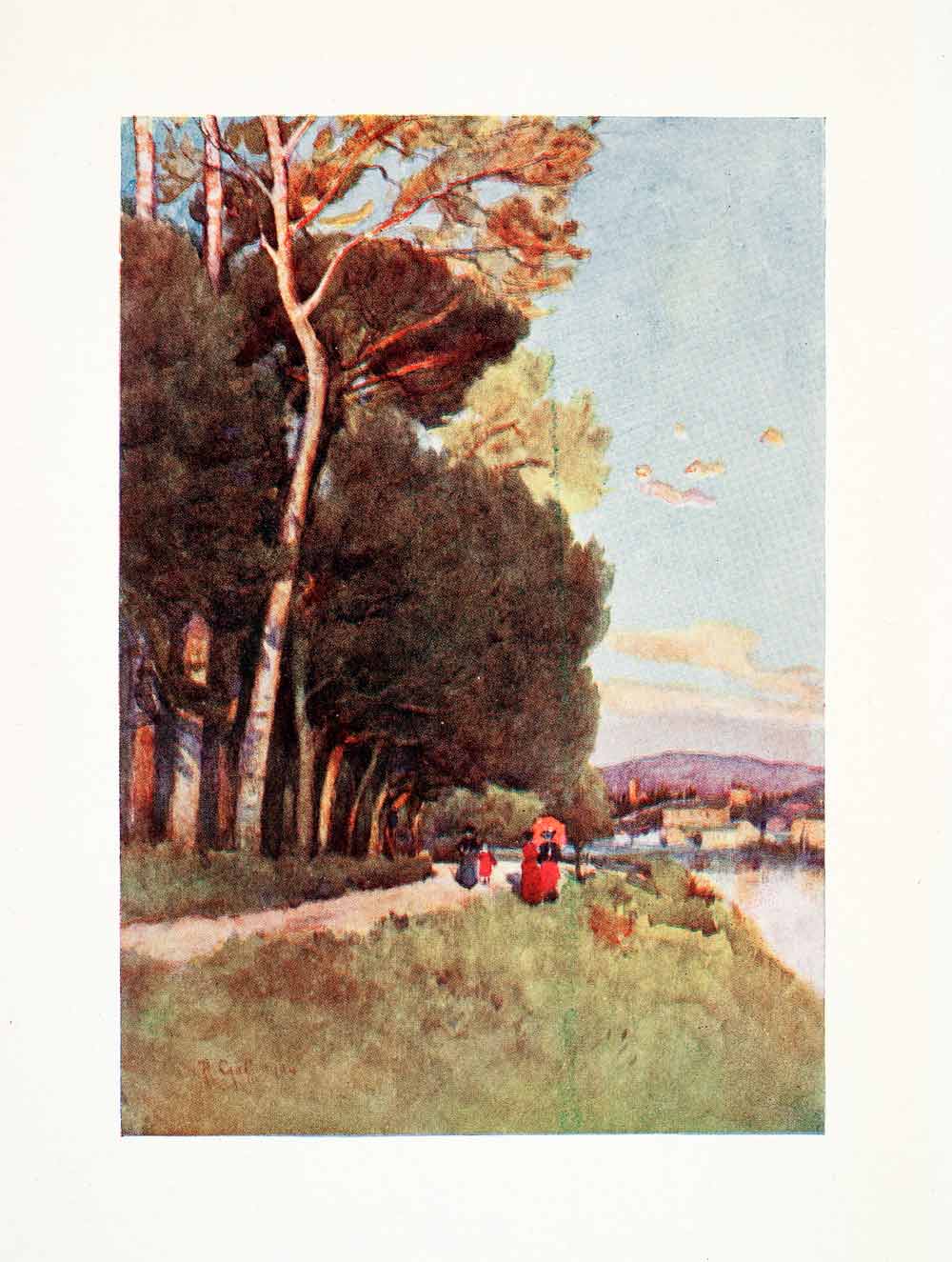 1905 Color Print Goff Cascine Park Florence Italy Arno River Tuscany XGYA2