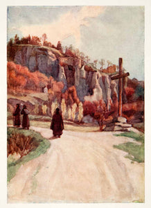 1905 Color Print Rock Monument San Francesco Church Assisi Road Italy Dora XGWB3