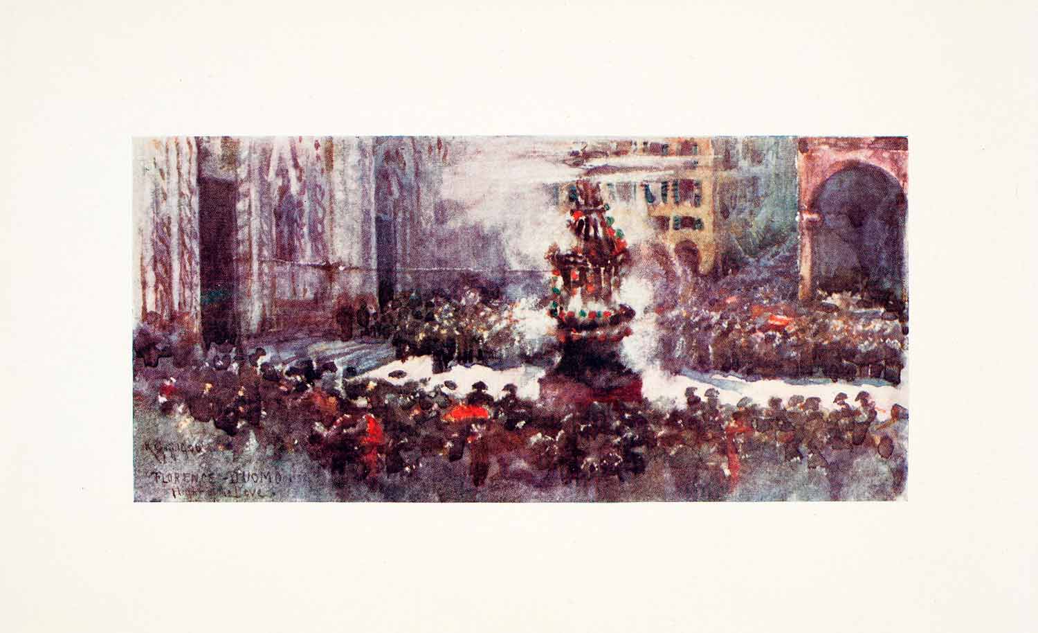 1905 Color Print Scoppio Carro Explosion Cart Easter Florence Italy Goff XGYA2