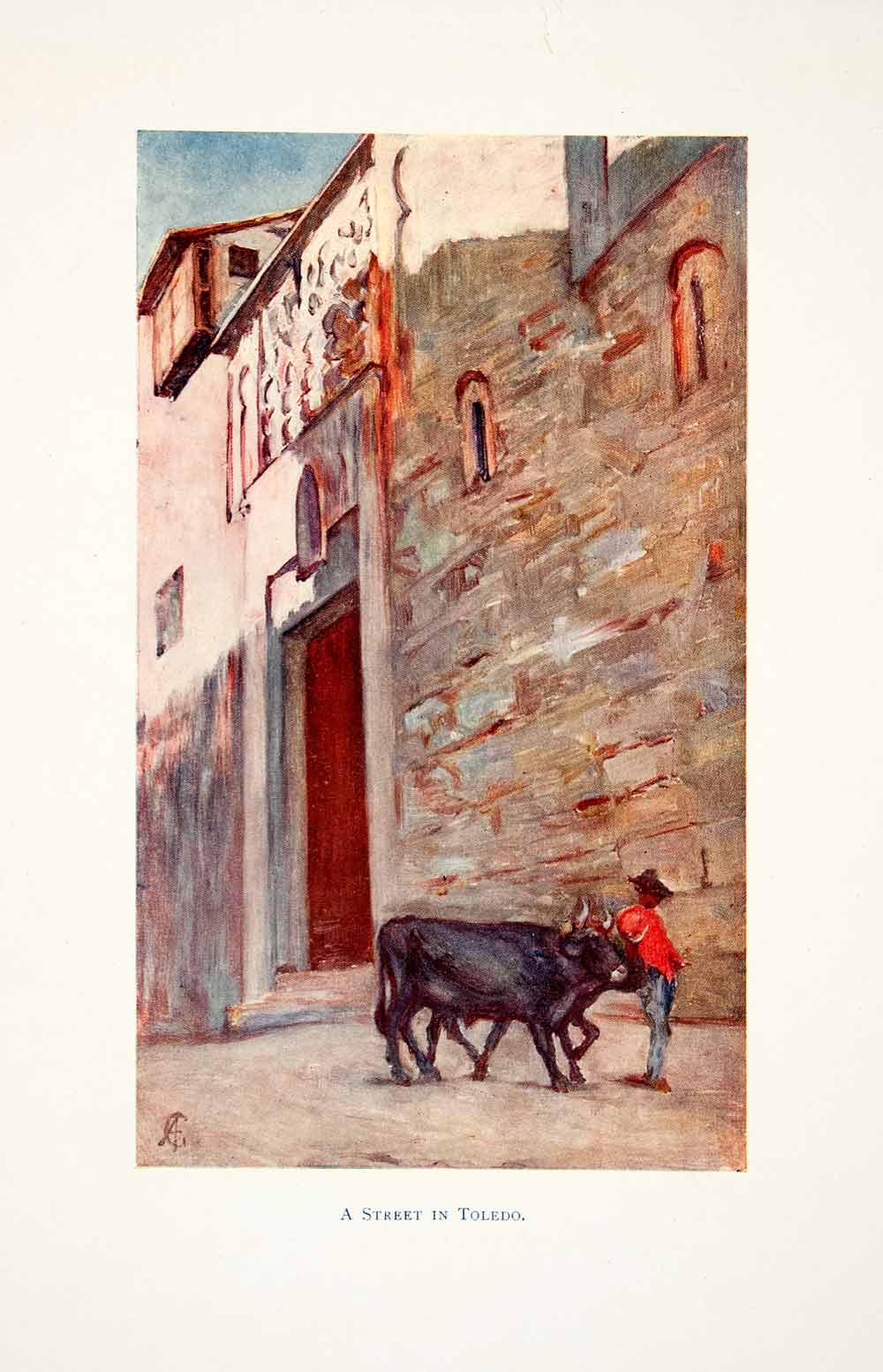This is an original 1905 color print of "A Street in Toledo," in Spain.