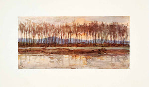 1905 Color Print Tuscany Italy Poplar Tree Landscape Arno River Evening XGYA2