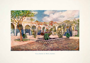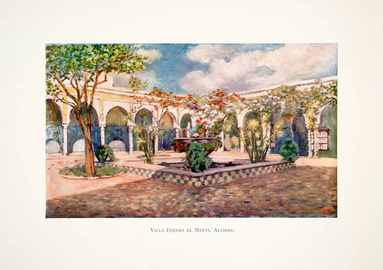 This is an original 1905 color print of the "Villa Djenan El Mufti, Algiers," in Algeria.