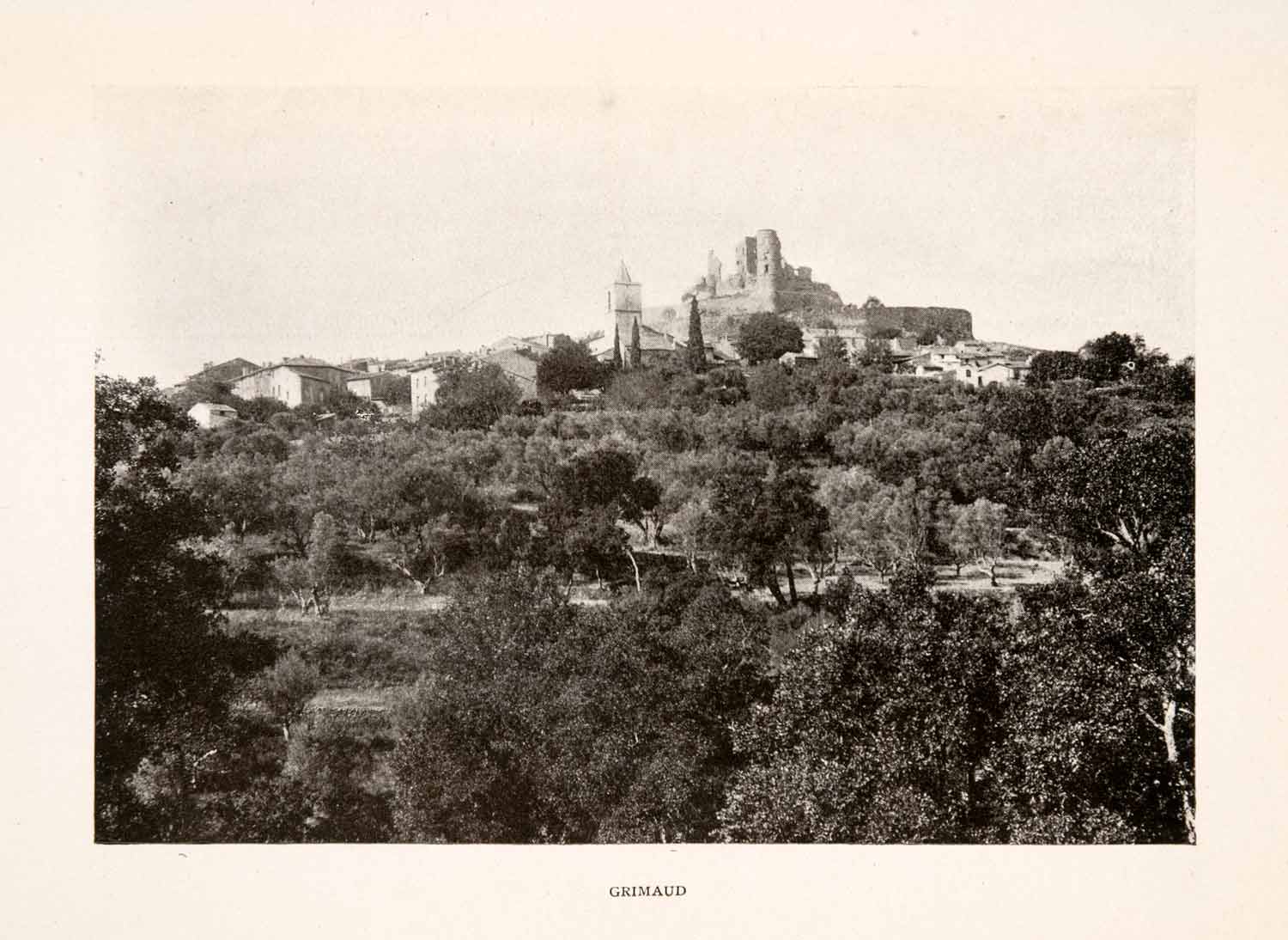 This is an original 1905 black and white halftone print of Grimaud, Var in France. This commune is located on the French Riviera.