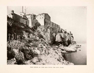 This is an original 1905 black and white halftone print of the prison that the Man in the Iron Mask was held at in France.