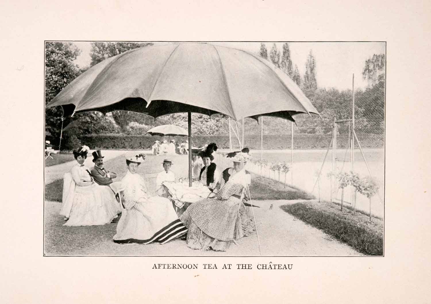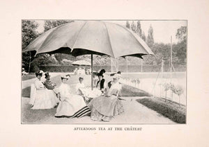 This is an original 1905 halftone print of "Afternoon Tea at the Chateau" in France.