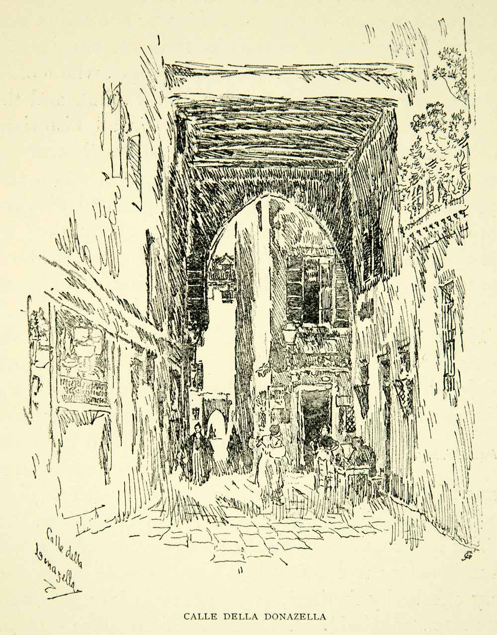 1905 Print Calle della Donazella Venice Street Architecture Joseph Pennell XEJA6