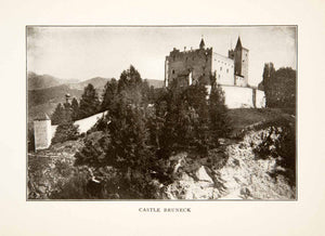 This is an original 1905 black and white halftone print of the Castle Bruneck in South Tyrol, Italy.