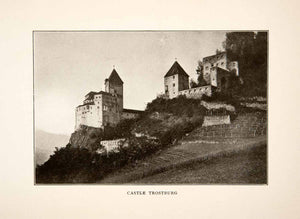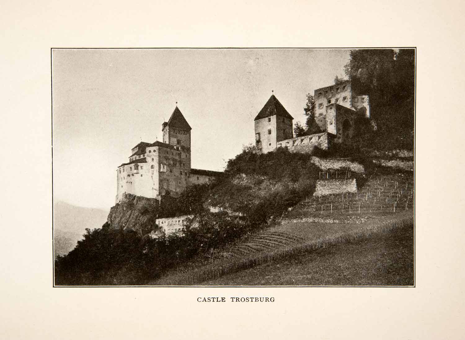 This is an original 1905 black and white halftone print of the Castle Trostburg in South Tyrol, Italy.