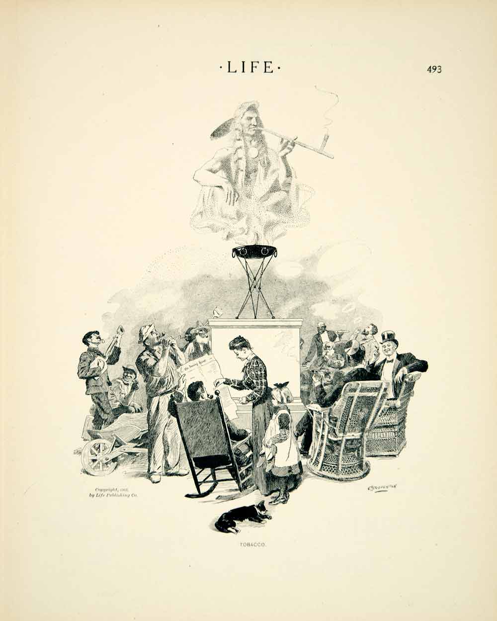 1905 Print Charles Broughton Art Tobacco Native American Political Cartoon YLF1
