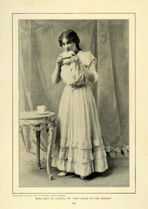 This is an original 1905 halftone print of a portrait of American stage actress and singer Edna May as "Angela" in "The Catch of the Season."
