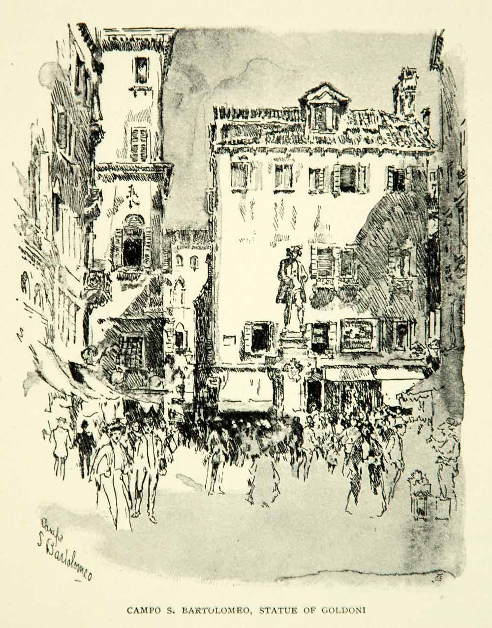 1905 Print Goldoni Statue Campo San Bartolomeo Venice Scene Joseph Pennell XEJA6