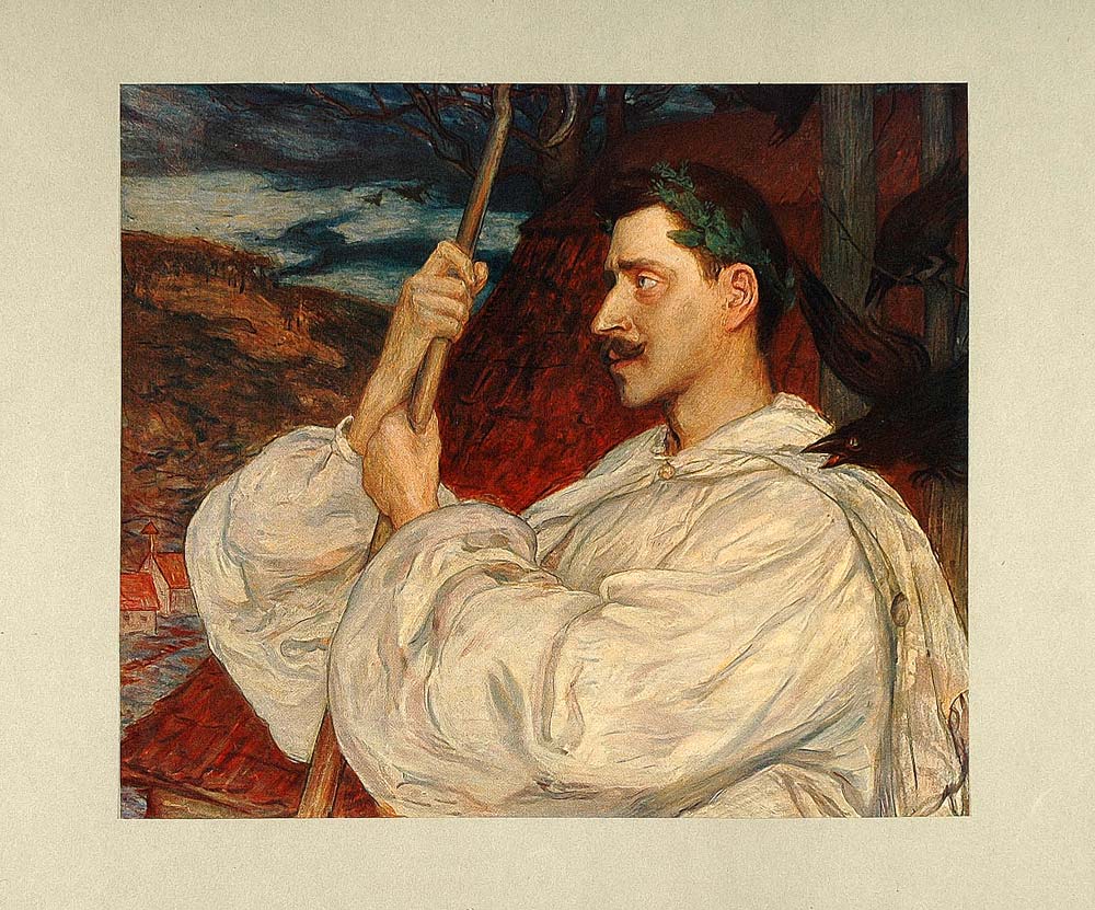 This is an original 1905 tipped-in color print of a painting by Swedish painter, Hanna Hirsch-Pauli, of the main character in a book by Swedish author, Carl Gustaf Verner von Heidenstam.