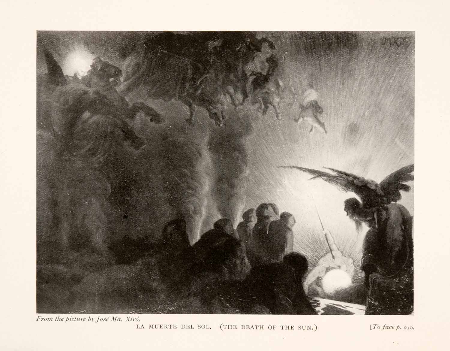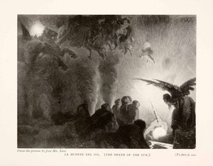 This is an original 1905 halftone print of "La Muerte Del Sol (The Death of the Sun)," featuring artwork by José Maria Xiro y Taltabull.