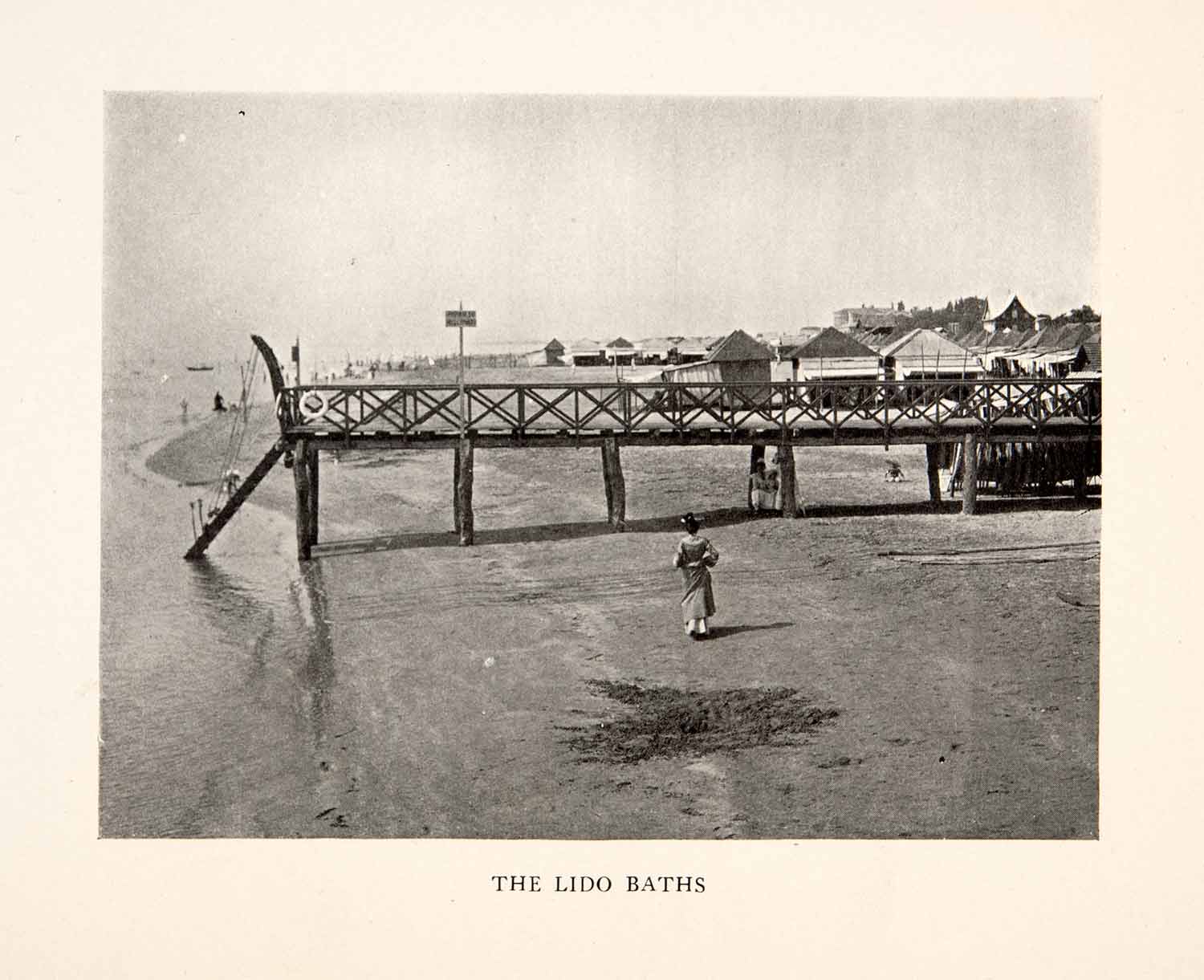 This is an original 1905 black and white halftone print of the Lido Bath place near Venice, Italy.