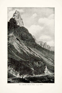 This is an original 1905 black and white halftone print of Mount Cimone della Pala in the northern Apennines of Italy.
