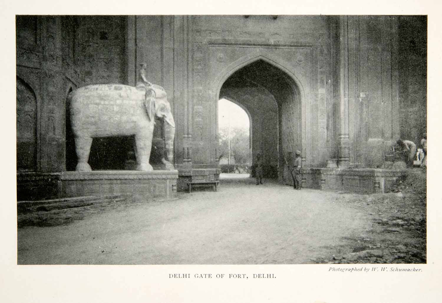This is an original 1905 black and white halftone print of a Delhi Gate that connects New Delhi to the walled city of Delhi in India.