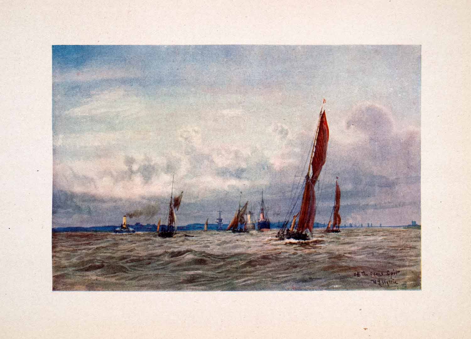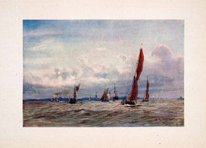 1905 Print River Thames England Sailboat Steamer Boats William Lionel Wyllie Art