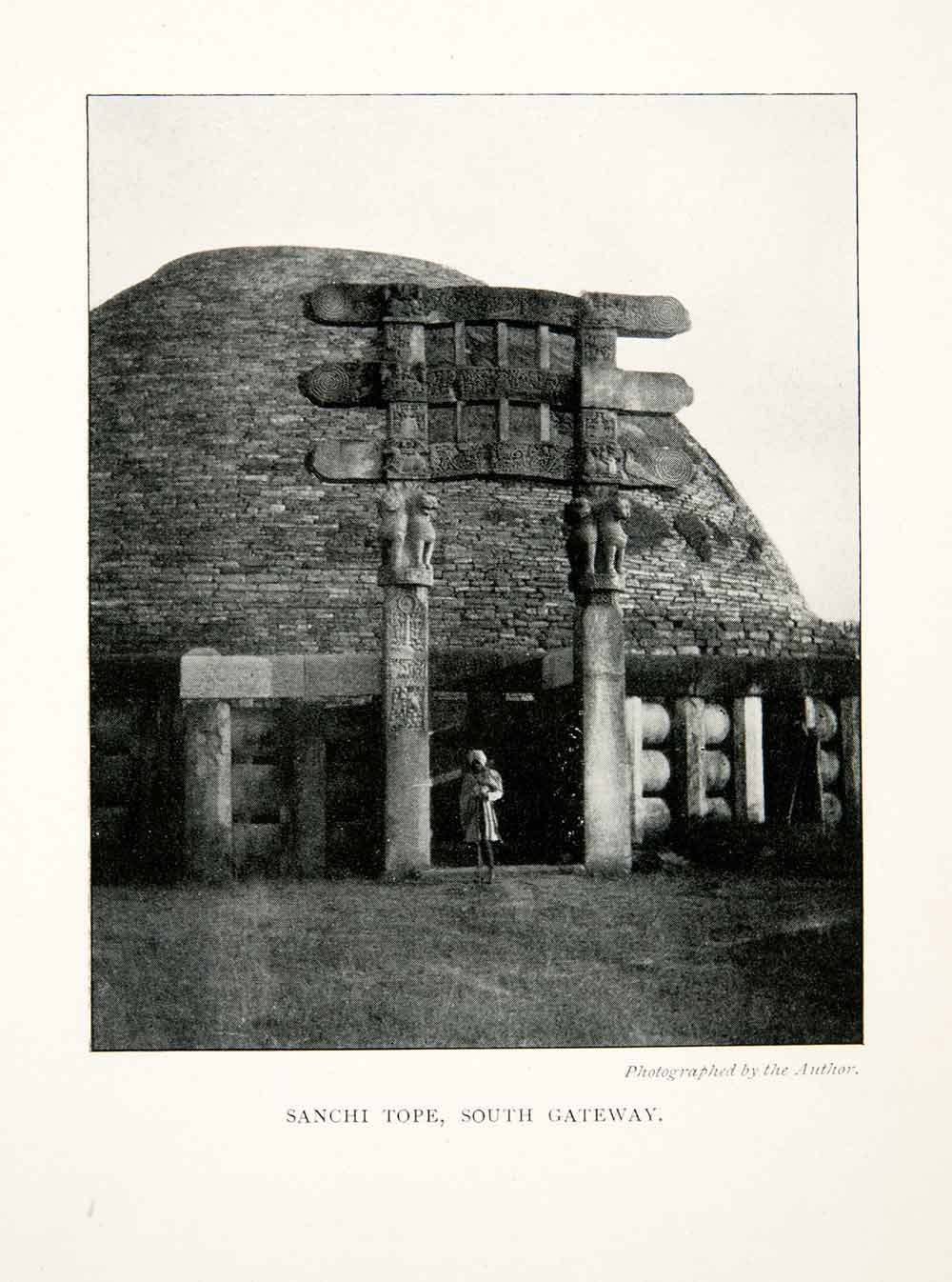 This is an original 1905 black and white halftone print of the south gateway at Sanchi Tope in Bhilsa Valley India.