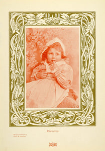 This is an original 1905 two-color print of a Victorian child with an Art Nouveau border design. Design and block by Chas. W. Harness.