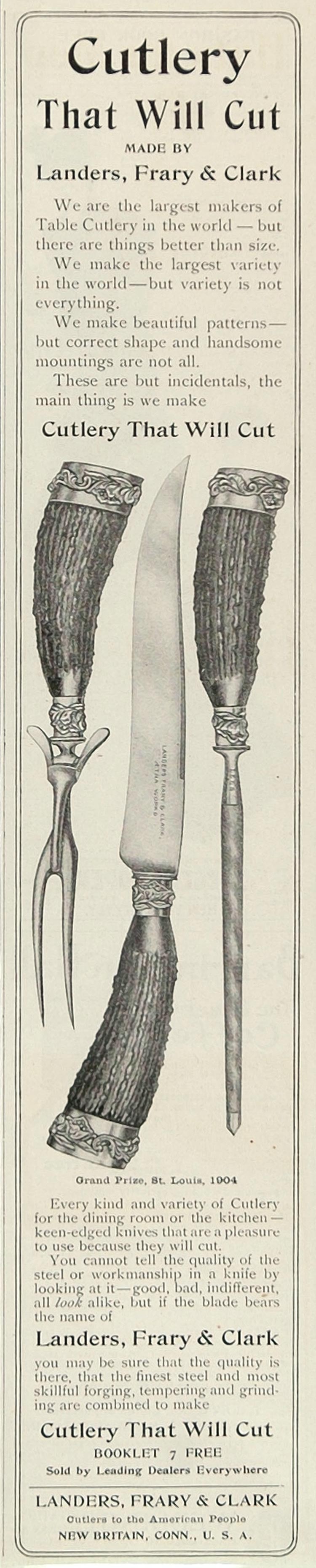 This is an original 1905 black and white print ad for table cutlery from Landers, Frary & Clark, New Britain, Connecticut.