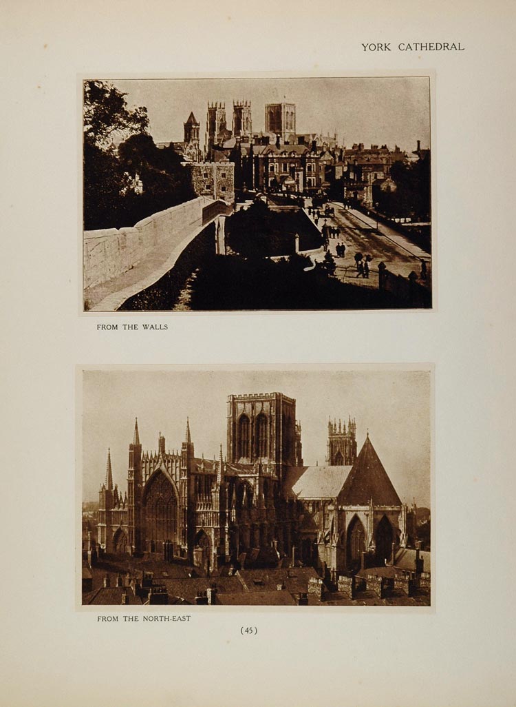 This is a set of two original 1905 tipped-in prints of the exterior of York Cathedral. Please note that there is printing on the reverse of the backing mount.