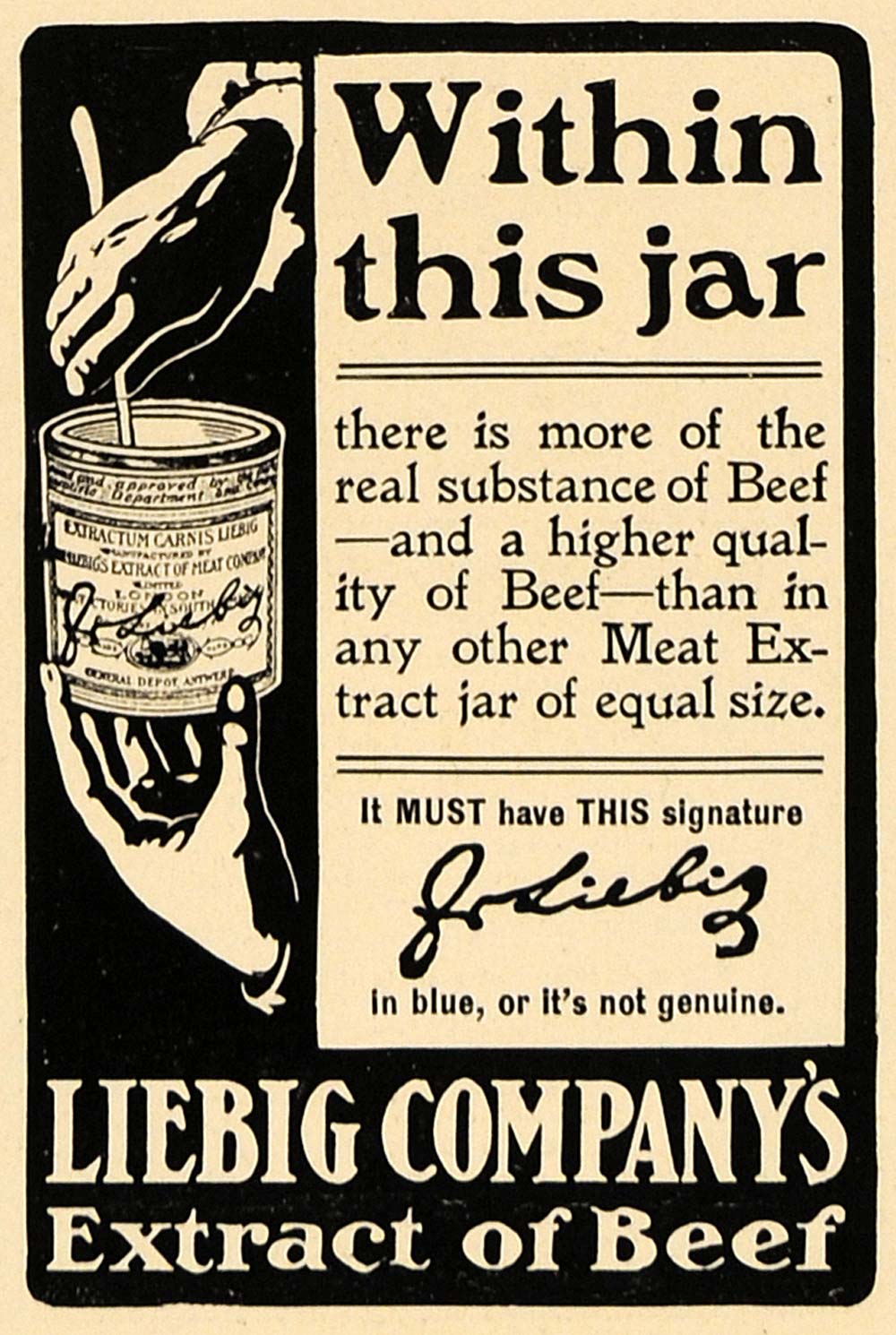 This is an original 1906 black and white print ad for Liebig Company's Extract of Beef.