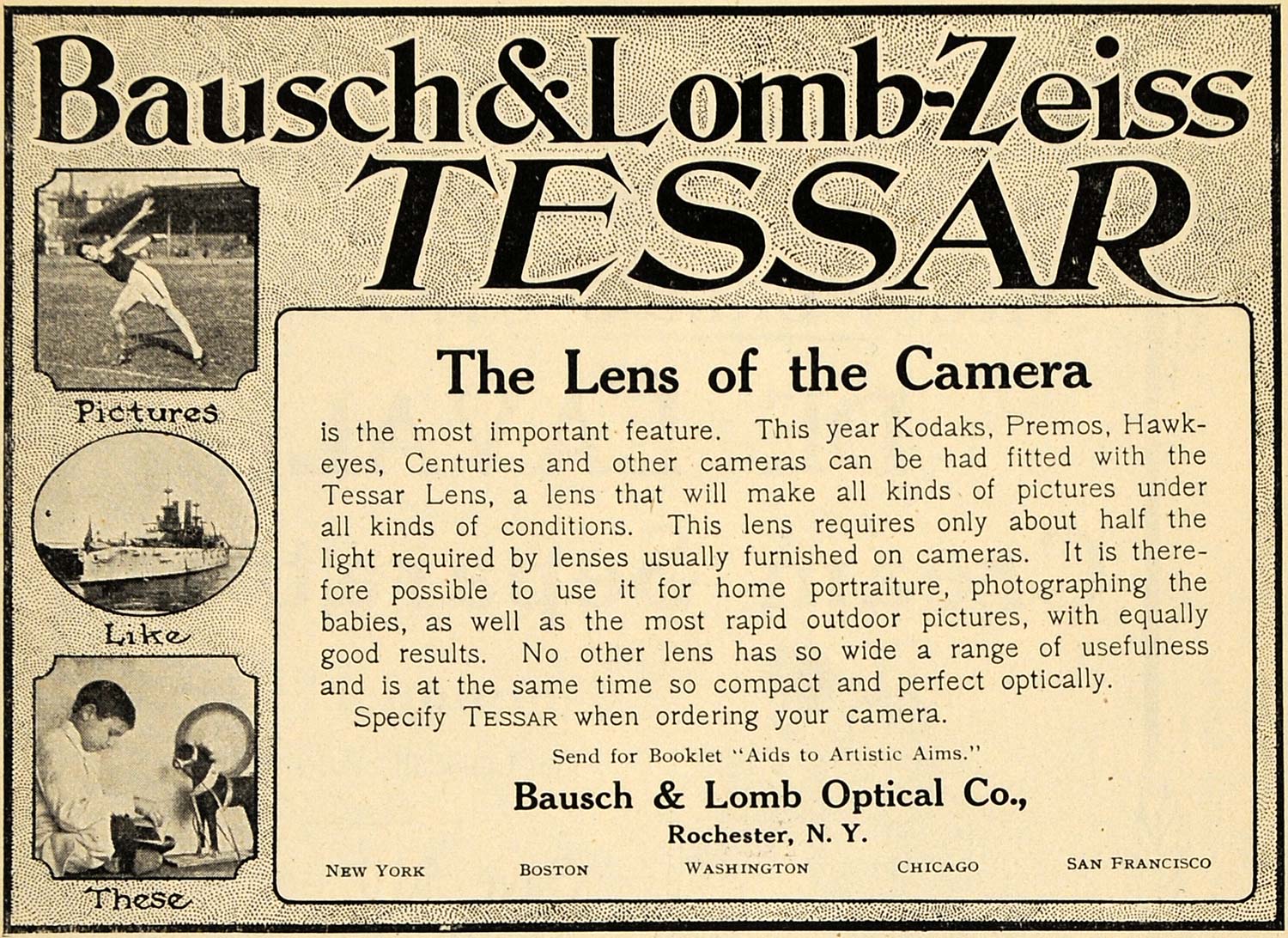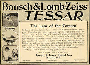 This is an original 1906 black and white print ad for Bausch & Lomg Zeiss Tessar camera lens.