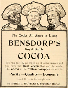 This is an original 1906 black and white print ad for Bensdorp's Royal Dutch Cocoa by Stephen L. Bartlett, Importer, Boston, Massachusetts.