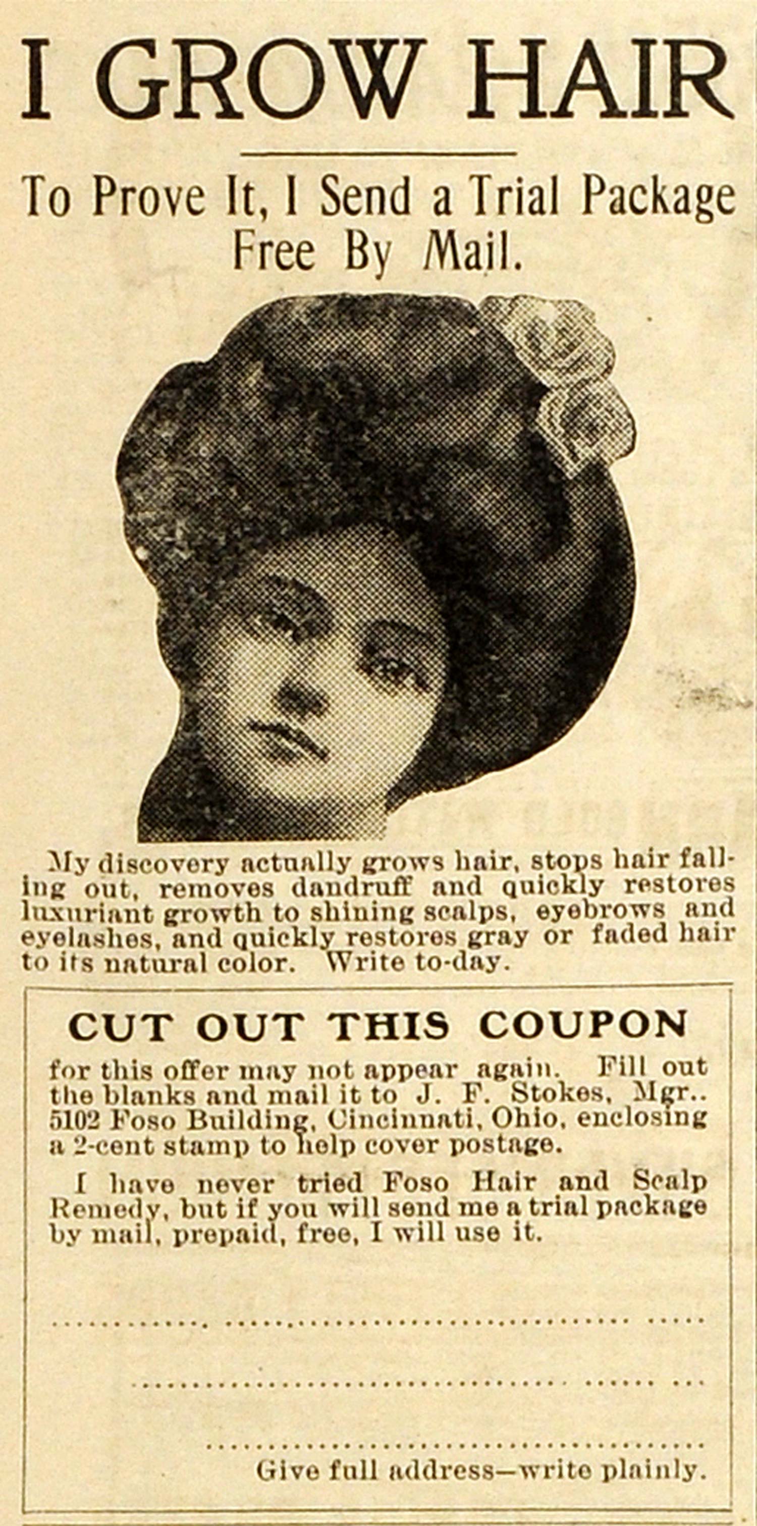 Keywords specific to this image: Vintage Advertising, Eyelashes, Thinning Hair, Balding, Female Baldness