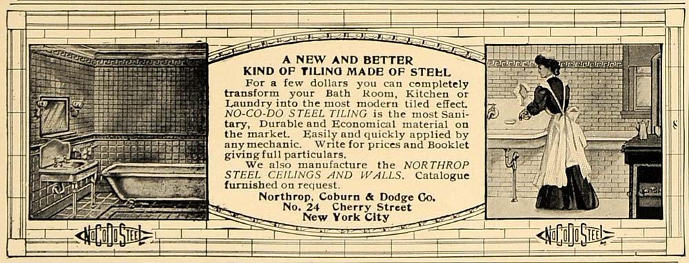 This is an original 1906 black and white print ad for Np-Co-Do Steel Tiling from the Northrop, Coburn and Dodge Company.