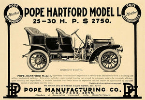 This is an original 1906 black and white print ad for the Pope Hartford Model L vehicle from Pope Manufacturing Company in Hartford, Connecticut.