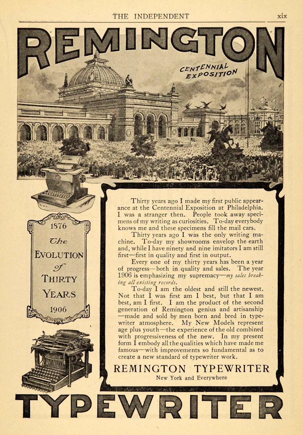 1906 Ad Remington Typewriter Centennial Exposition Fair - ORIGINAL TIN4