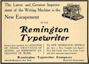 1906 Ad Remington Typewriter Co. Writing Machine NY - ORIGINAL ADVERTISING TIN5