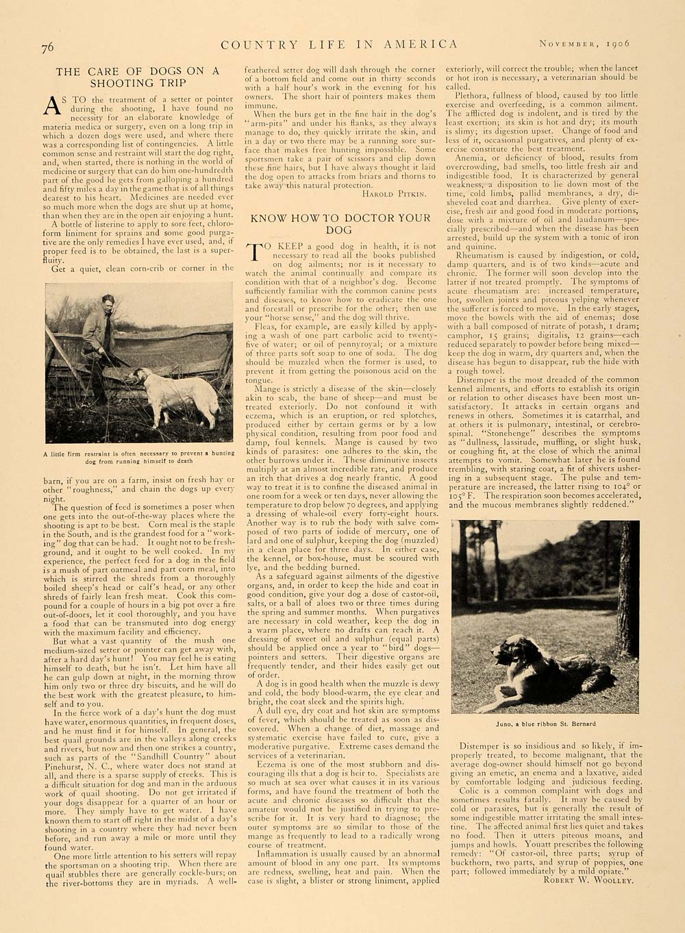 This is an original 1906 2 page (1 page, double-sided) article by authors, such as James W. Dixon, Robert W. Wooley and Harold Pitkin. Topics in this article include proper horse and dog care. Please see all images.