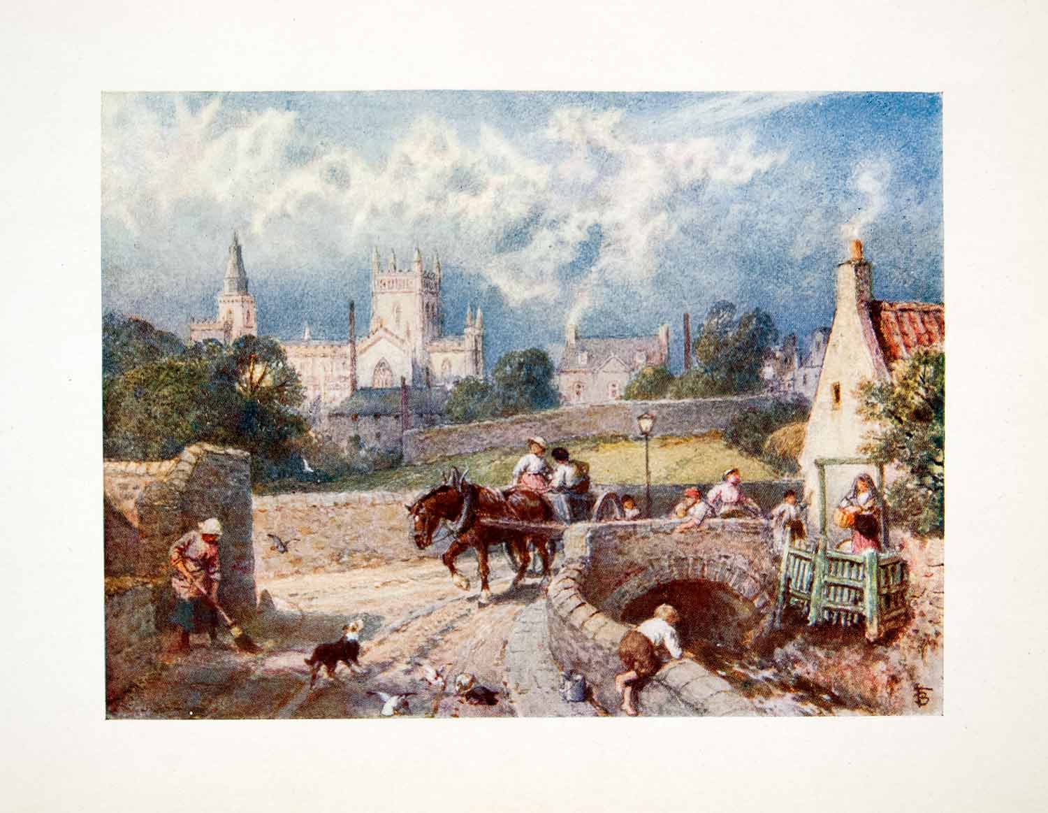 1906 Color Print Dunfermline Fife Scotland Abbey Church Village Birket XAT7