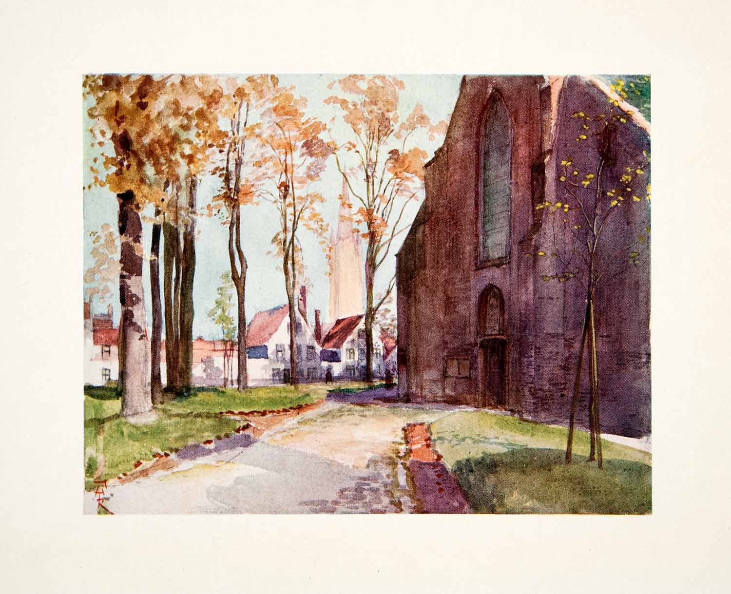 1906 Color Print Forestier Bruges Belgium Beguines Beguinages Begijnhof XGPB9