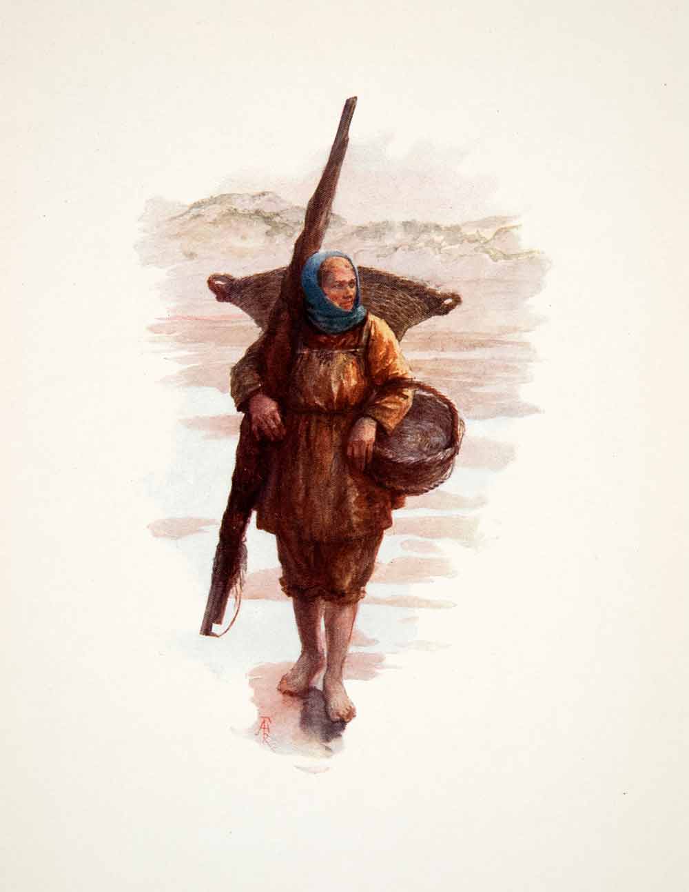 1906 Color Print Forestier Shrimper Koksijde Coxyde Flemish Flanders XGPB9