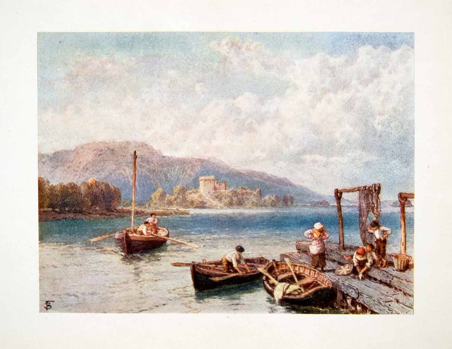 1906 Color Print Myles Birket Foster Loch Leven Castle Scotland Rowboat XAT7