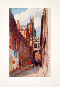 1906 Color Print Rue Ane Aveugle Bruges Belgium Street Palais Justice XGPB9