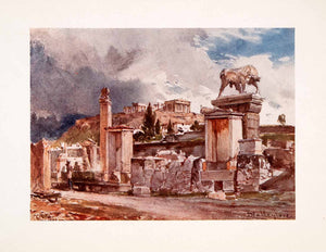 1906 Color Print Tombs Statue Dipylon Athens Greece Parthenon Ruin XGSA3