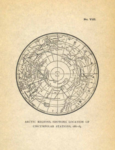 1906 Lithograph Arctic Circumpolar Stations Antique 1881-1883 Map XGR5