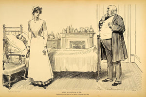 1906 Print Charles D. Gibson Girl Nurse Doctor Patient Bachelor Victorian Satire