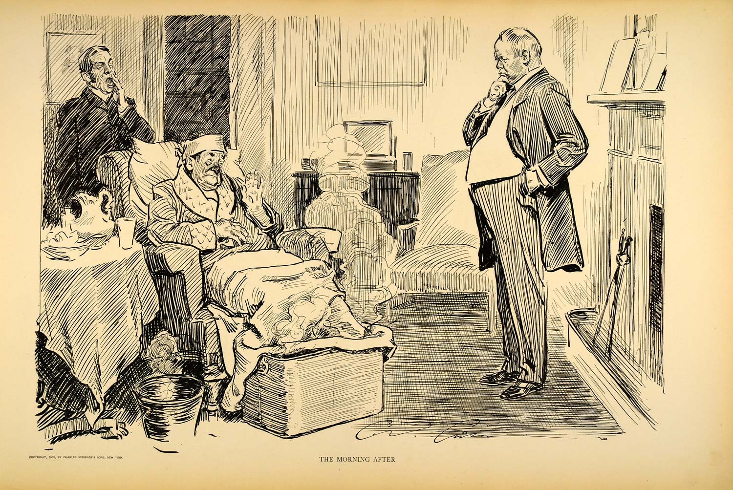 1906 Print Charles D. Gibson Morning After Hangover Drunk Victorian Humor Satire